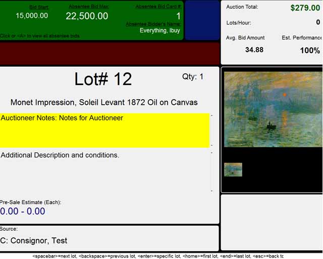 Auctioneer's Screen for Instant Auction Info